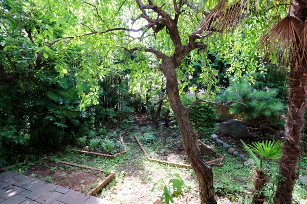 住宅地とは思えないほどの緑豊かな庭が広がる