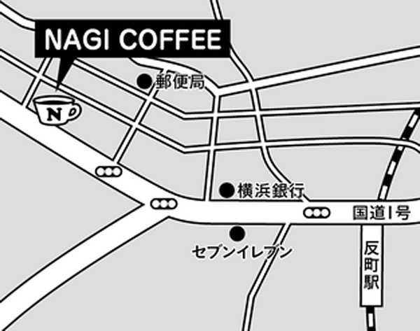 駅から国道1号線をまっすぐ行って、Y字路を右折して「NAGI COFFEE」へ