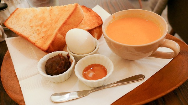 ポタージュはとてもやさしい味で、トーストは何も言わずに厚切りにしてくれていた。じんわりうれしい。