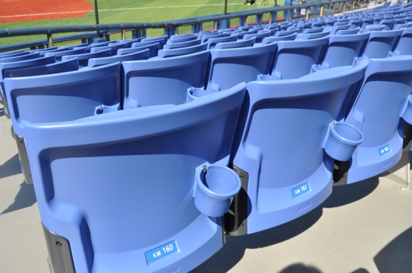 また、内野エリアの対象となる5909席は、固定式から座面が上がる跳ね上げ式座席に変更。