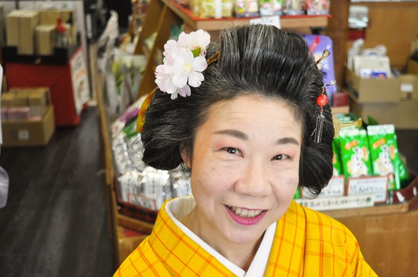 JR洋光台駅前にあるお茶専門店に、まるでタイムスリップしてきたかのような、着物を着た日本髪の女性がいます。日本髪にしたきっかけや理由、お手入れ方法などを調査してください。(リグヒトさんのキニナル)