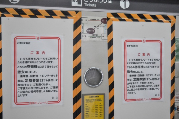 大船駅では、既存の券売機を撤去してICカード対応機の工事をしていた