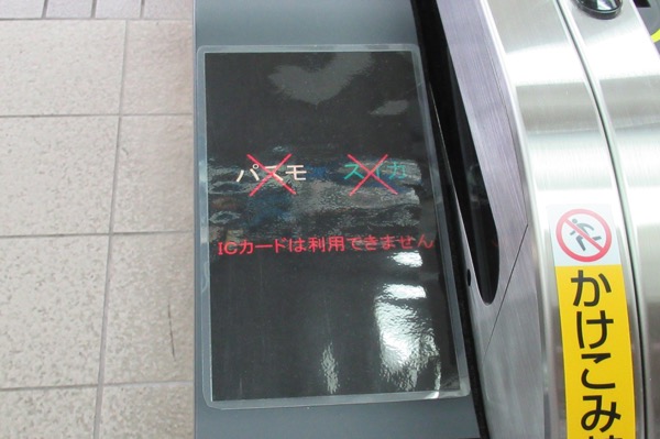 自動改札機自体はICカード対応済で、覆いを外せばカードが使える