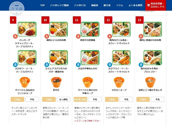 メニューはおいしそうだけど・・・(ハマ弁公式HPより)
