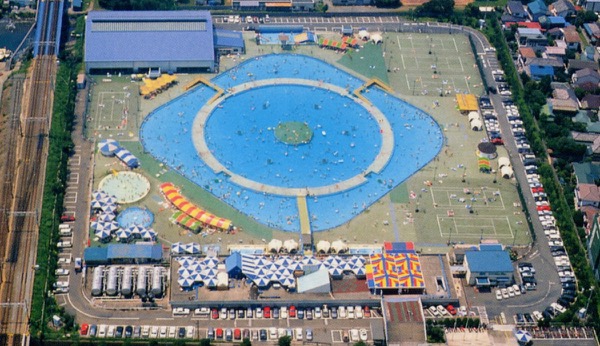 本牧市民プールは、1969(昭和44)年7月に中区本牧元町に設置。もともと海水浴や潮干狩りなど市民に親しまれてきた海を工業地帯建設のために埋め立て、海を失った市民のために本牧市民プールが建設された。