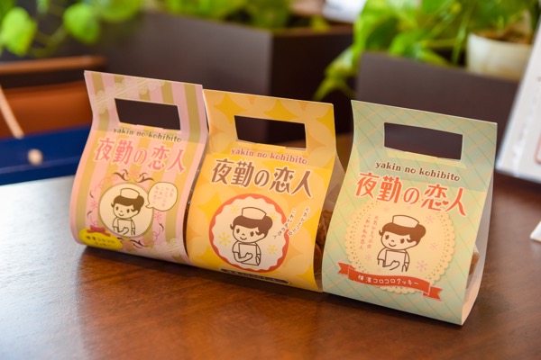 キニナル中身については、「実際に看護師さんたちの『夜勤をしていると小腹が減る』という声を参考に、小さいサイズで味に飽きがこないように6種類のクッキーが入っています」と中原社長。