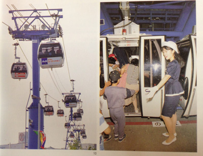 横浜博覧会のゴンドラと乗り場の様子(画像は過去記事より)