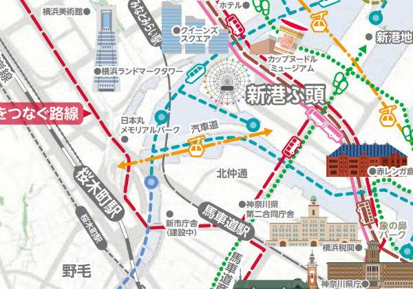 横浜市では、横浜都心臨海部の回遊性を高めるため、2015(平成27)年に「横浜市都心臨海部再生マスタープラン」を策定。