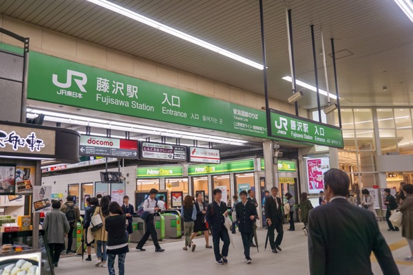 南口を出るとすぐに、フジサワ名店ビルが見える。