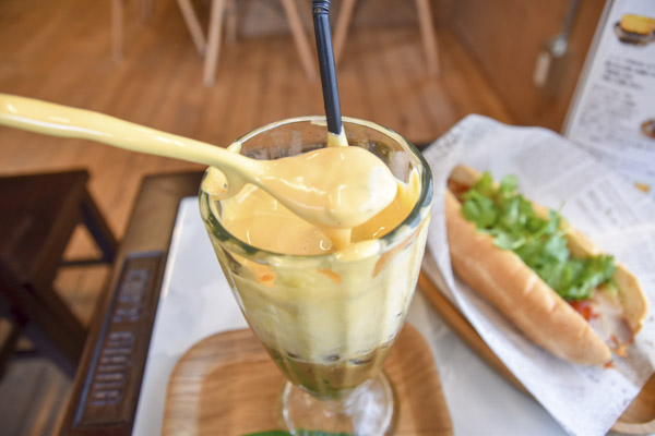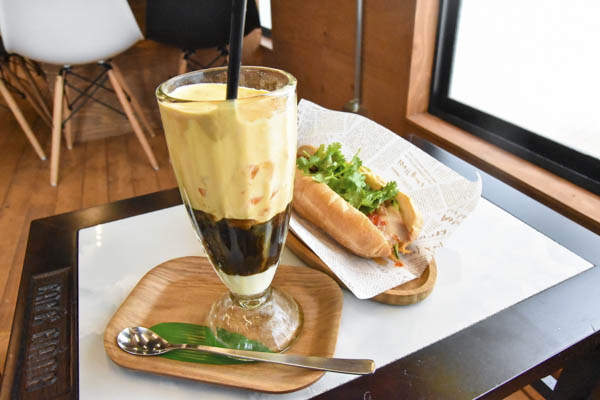 エッグコーヒーの濃厚な甘さに、バインミーがよく合う