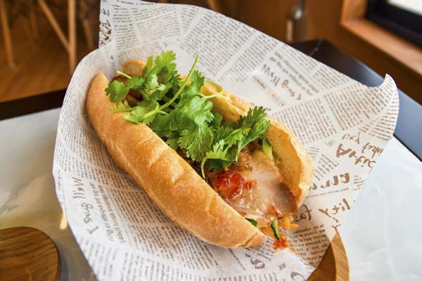 エッグコーヒーと一緒に注文したバインミーには、北京ダックの肉とチャーシューが入っており、これも陳さんが経営する飲食店で提供している本格的なもの。