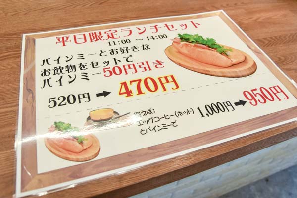 ちょうどお昼どきだったので、平日限定の「特製バインミーのドリンクセット(950円/税込み)」を注文。
