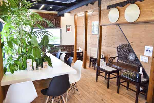 店内の奥へ進むと、ベトナムの雰囲気をもった座席が用意されている。