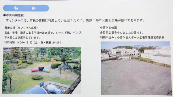 施設と広場の関係については「当施設は栄区の大部分と戸塚区・港南区の一部を処理区域とする下水を再生する施設です」