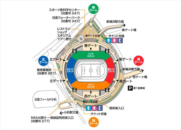 新横浜駅から近いのは、日産スタジアムの東ゲート側