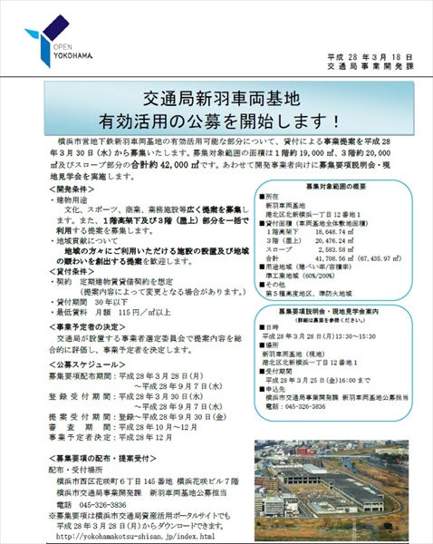 交通局は、2016(平成28)年3月に活用事業を行う企業の公募を開始。