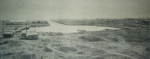 造成当時の川崎運河。現京町小付近の「船溜まり」(京急電鉄提供)