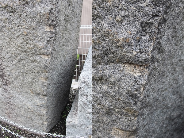巨石を実際に目にする限り、自然にできた(出土した)石ではなく、明らかに加工がされている。お城の石垣などに使われていたものかも? と思えた。