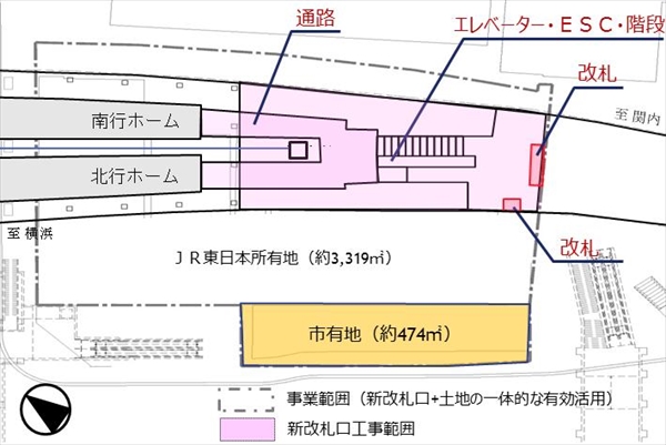 新改札の設置は、馬車道方面で横浜市の新庁舎建設が進み、開発が著しいことを受けた対応だ。現在の状況はどうなっているのか、確認に向かうことにした。