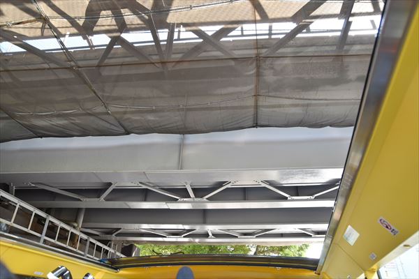 思わず立ち上がりそうになったが、走行中は危険なので座席に座った状態を厳守。車外に手や顔を出したり、街路樹の枝葉に触れることもNGだ。根岸線の高架下は普段から歩いているが、こんなにも間近で見たのはもちろん初めて。タイミング良く電車が通ってくれたらなぁ、なんてワクワクしていると、次に目に飛び込んできたのは・・・。