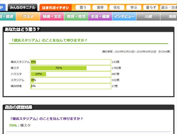 2019(平成31)年3月15日~4月20日の期間、はまれぽのサイト上で「『横浜スタジアム』のことをなんて呼びますか?」というアンケートを実施。キニナル結果は・・・。