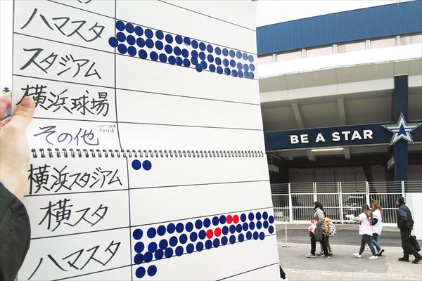 3740票のうち、ハマスタが87パーセント(3253票)、横スタが5パーセント(187票)、横浜スタジアムとスタジアムが4パーセント(150票)だった。