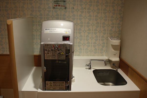 2台並んだおむつ交換台の側には給湯設備が設置されている。授乳室はその奥にある。ドアでしっかり隔離されているため、安心して利用できそうだ。
