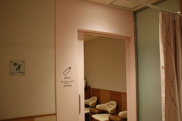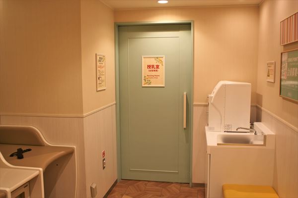 エレベーターを降りたら左方向へ直進、エスカレーターで昇ってきたら右前方へ進んだ場所にある、ベビー休憩室。