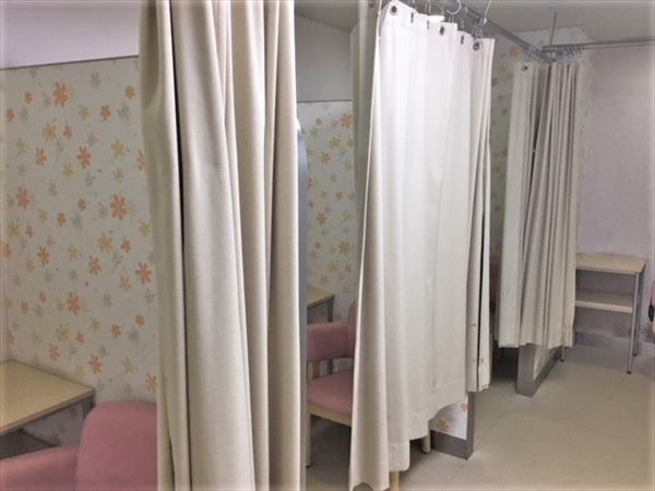 授乳室の中にはカーテンの仕切りがある授乳スペースが2ブースある