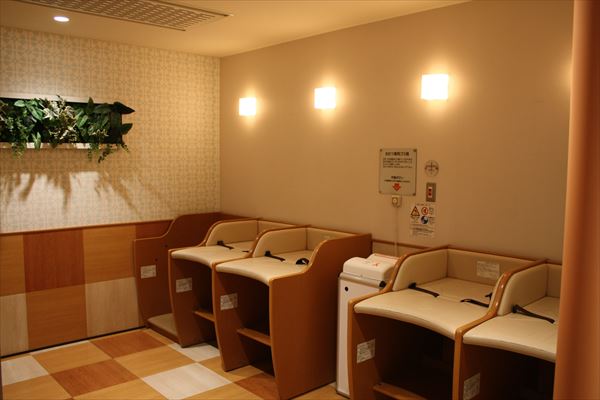 授乳室は4ブース。椅子に座って落ち着いておっぱいをあげることができる。カーテンで仕切れば、ママと赤ちゃんだけのプライベートな空間に様変わり。ぐずっていた赤ちゃんも、ここなら安心できそう。