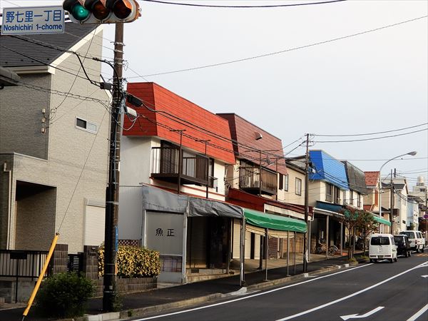 桂山公園の女性からは、商店街の詳しい場所を聞いていなかった。見たところ、辺りに商店街らしき景色はない。だが、団地の近くを歩いていた年配の女性に訊いてみると、すぐに教えてくれた。目と鼻の先の「野七里一丁目」交差点付近が商店街だという。
