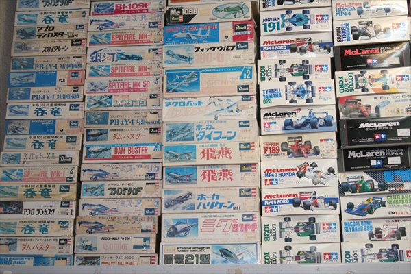 「こんにちは」と店内に入ると、人が1人やっと歩ける程度の通路が確保されている。店内は、上から下まで、ビッシリとプラモデルの箱が積み上げられていた。