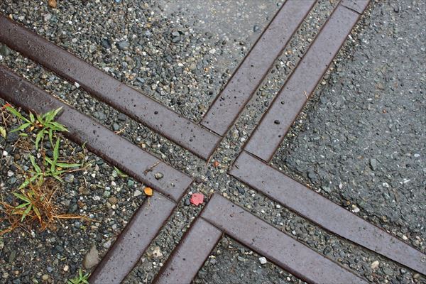 しかもひとつではなく、すぐそばに同じような十字交差がもうひとつ。なんとダブルの十字交差だ。周囲を見渡したが、残念ながら現在はこの十字交差につながる線路(おそらく車道にあったであろう)の姿は無く、綺麗にアスファルトで舗装された車道があるだけだった。