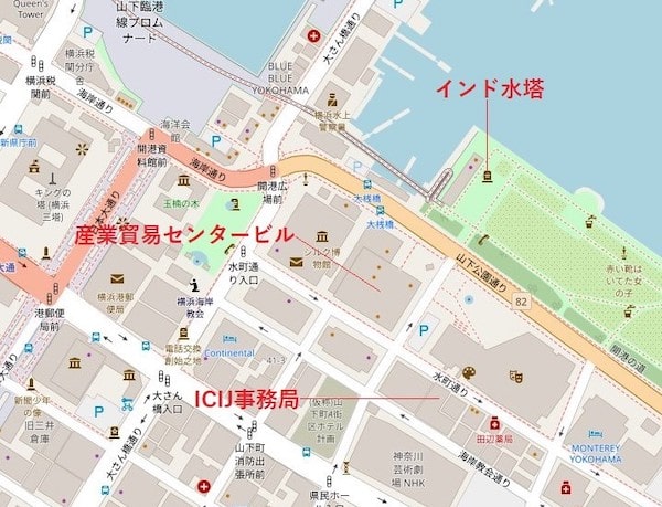 ICIJの事務局は山下公園通りの一筋裏、水町(みずまち)通り沿いにある。