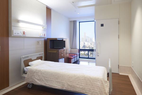 なおニッパツ三ツ沢球技場に隣接しているが、病棟は球技場側に通路を配置し、反対側に病室をレイアウトすることで防音性を高めている。さらに窓には二重サッシを採用し、防音性は完璧だ。