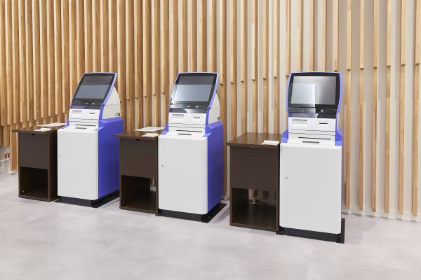 右側に行くと総合受付で、椅子がずらりと並んでいる。一方、左側は再審受付機と診療費支払機が。その突き当たりをさらに右に曲がれば、診療科別にA〜Fまでの外来受付が並んでいる。診察を受けるには、まずはここに来ることになるだろう。
