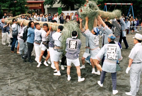 その巨大な蛇を5つの町内会の人々が結集して担ぐ(写真提供:高橋英之進氏)