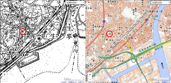地図で見ると目当ての交差点は、第一京浜のキリンビール横浜工場最寄り交差点「生麦一丁目」よりひとつ上り方面にあった。