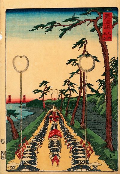 思い出してほしい。本編冒頭の浮世絵『東海道之内生麦』を。そして、この道を絵の中のように延々と連なる「下に~、下に~」の大名行列が、かつて現実にあったことを想像してみたい。