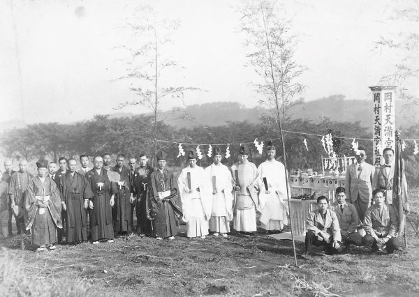 地鎮祭は市長臨席のもと盛大に執り行われた。1935(昭和10)年頃(磯子図書館所蔵、岡村天満宮提供)