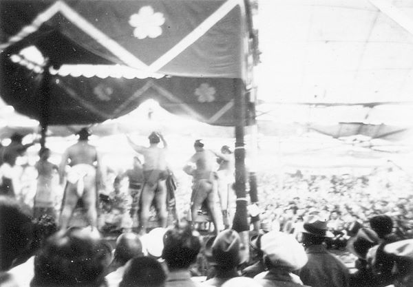 古写真のためちょっとピントは甘いが、すし詰めの観衆の、土俵へ注ぐ熱気が伝わってくるような一枚だ。