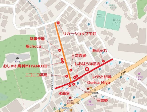 下の地図が初回の取材で確認した「第一みゆき商店会」のエリア。