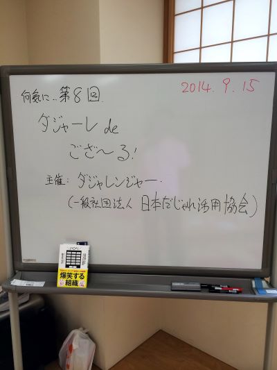 鈴木さん曰く「実はその前年の8月に、『ダジャーレdeござ~る!』というワークショップを始めたんです。それが好評で回を重ねるごとに参加者が増えていき、翌年、その勢いが『爆笑する組織 会社を強くする「だじゃれ」仕事術』(自由国民社発行)の出版につながっていきました。
