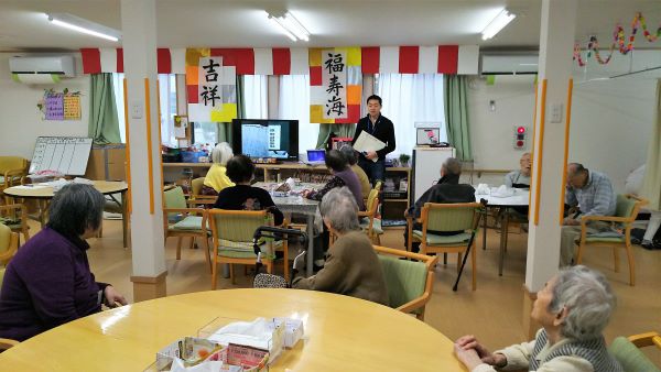 「チーム対抗で3つのだじゃれゲームを競う」というイベントは、実は子どもたちだけのものではない。協会で同様の催しを、高齢者を対象に、市内のデイサービスや地域コミュニティなどでも開いている。その名も「だじゃれde脳トレ」。