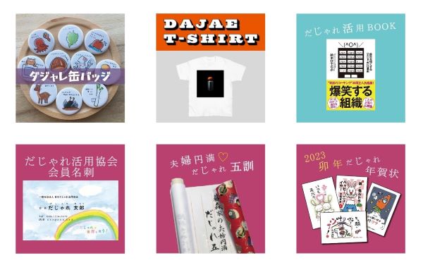 ――「クスリ」と笑えることは健康を維持する一番の薬。日常生活に笑顔と会話のきっかけをもたらす、日本だじゃれ活用協会公認のだじゃれグッズを、順次、お届けします。