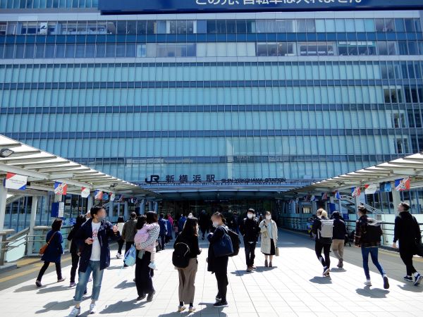 新幹線の乗り場に直結する新横浜駅北口は、複合商業施設「キュービックプラザ新横浜」と一体化し、大いににぎわっている。