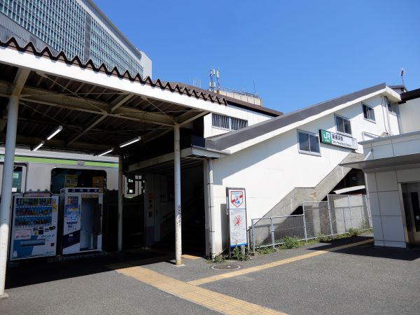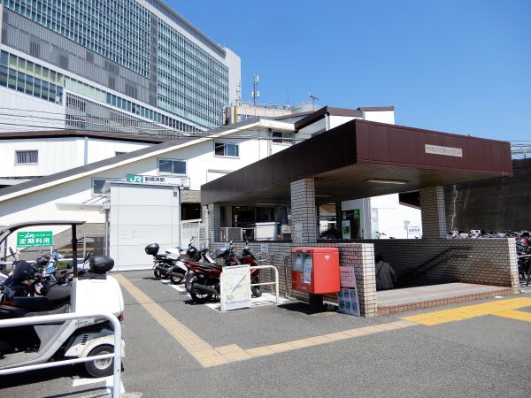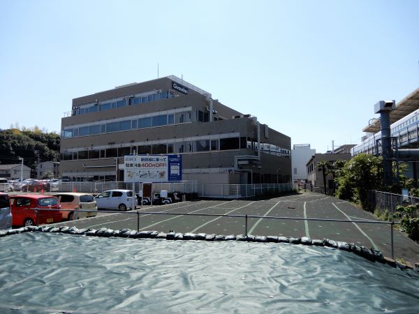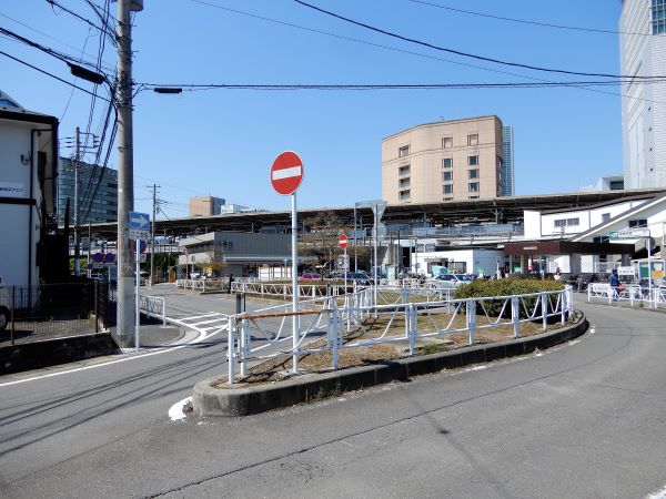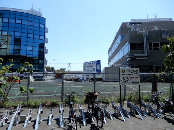 駅前の多くの空間を占める市営駐輪場が印象的だ。そして、周囲にある比較的大きなビルは、上の写真右側のトヨタレンタカーが入るビルと、