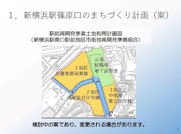 そこで再びこれまでの事業計画を廃止し、新たに提案されたのが「新横浜駅篠原口のまちづくり計画(案)」なのだった。