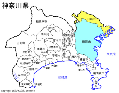 地図を見ると、一番東も一番西も川崎市だということが分かる。もちろん、北も