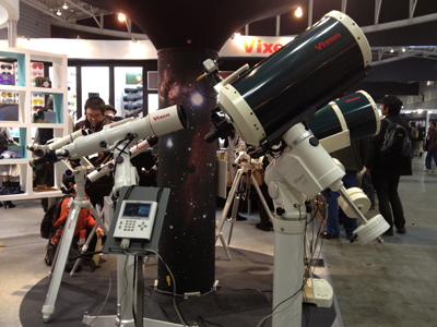 望遠鏡や双眼鏡、日食を観察するための日食グラス等の展示も人気を集めていた。